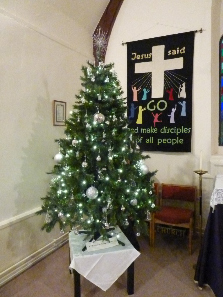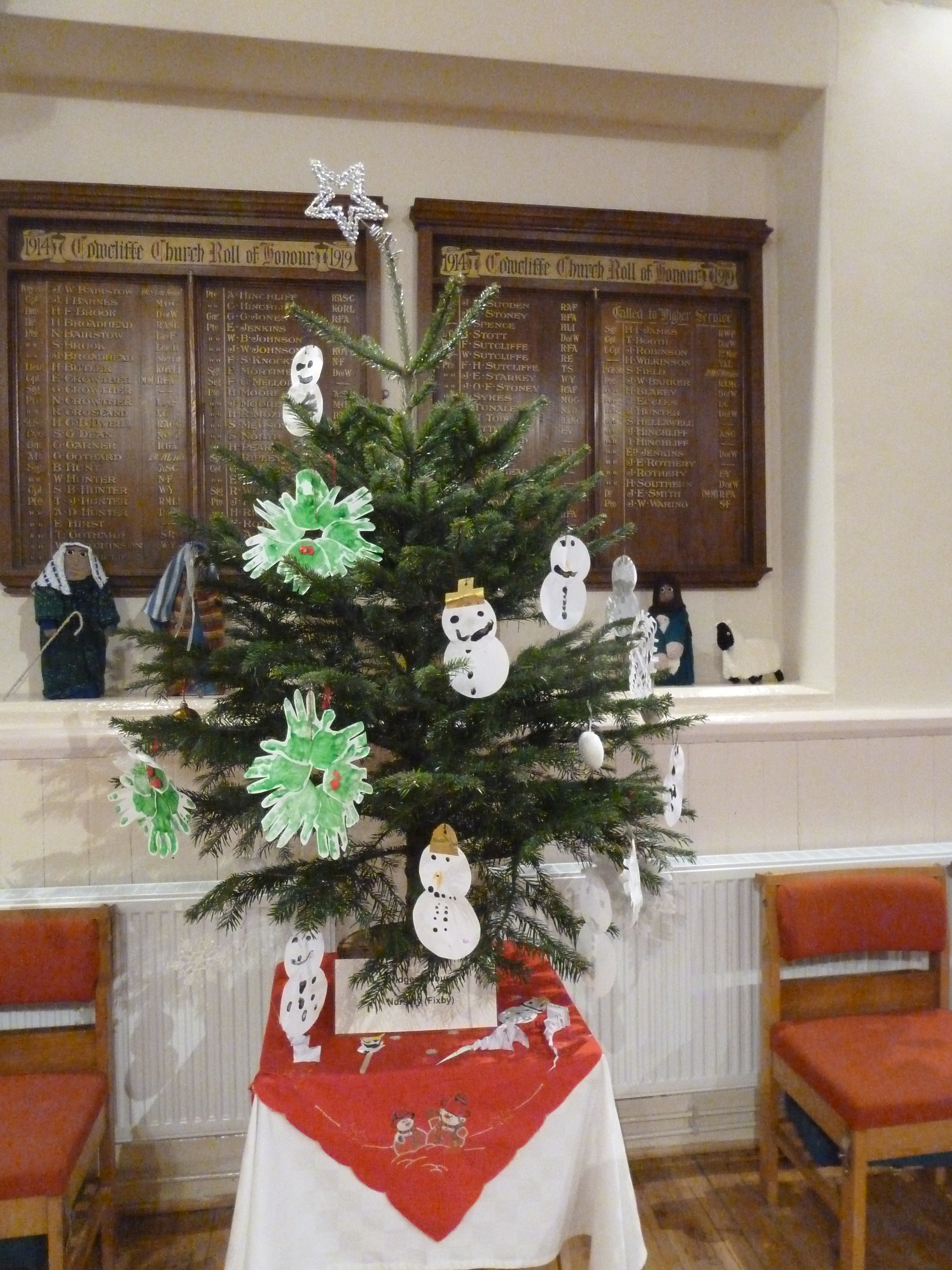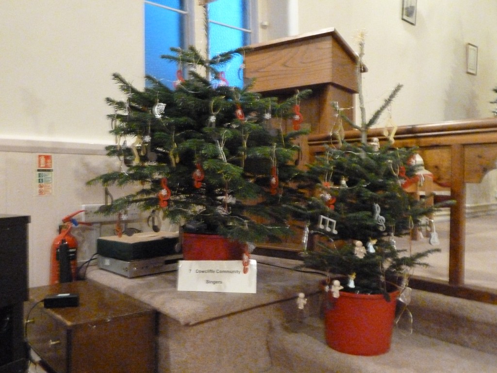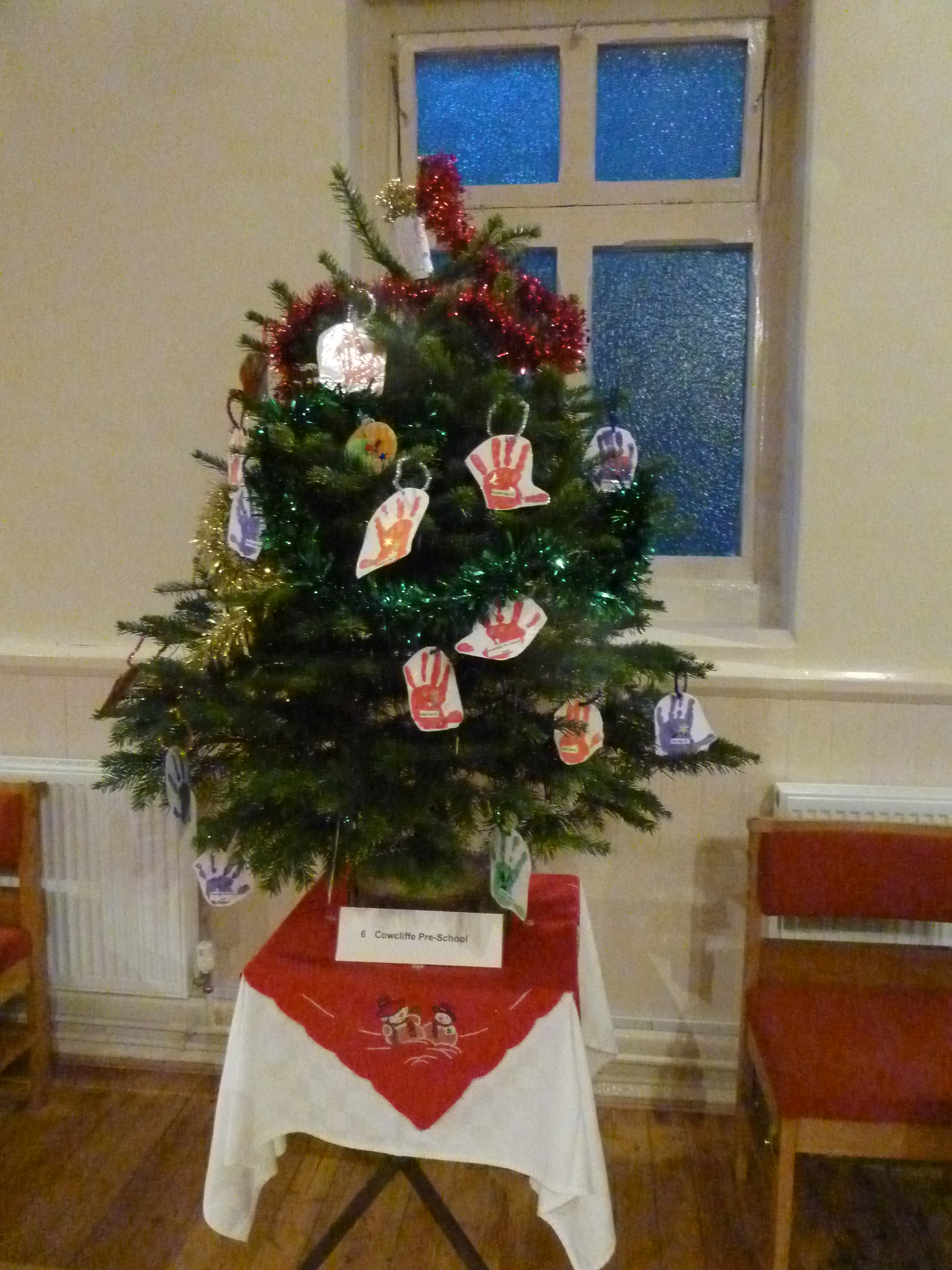 We held a Christmas Tree Festival on 3rd, 4th & 5th December. We had 15 trees decorated by groups from Church and the Community – a cheese & wine opening evening with entertainment by the Cowcliffe Community Singers – a coffee morning/craft fayre.