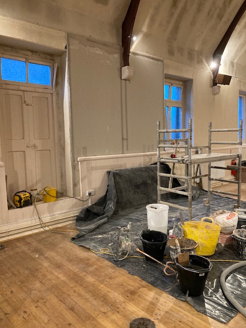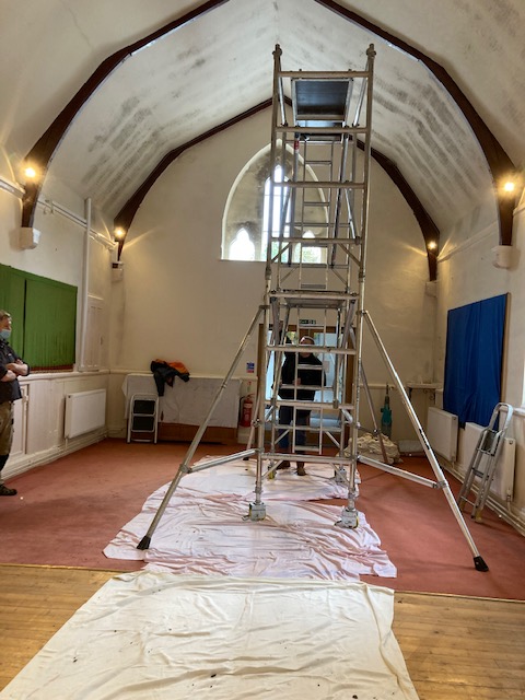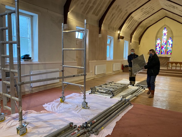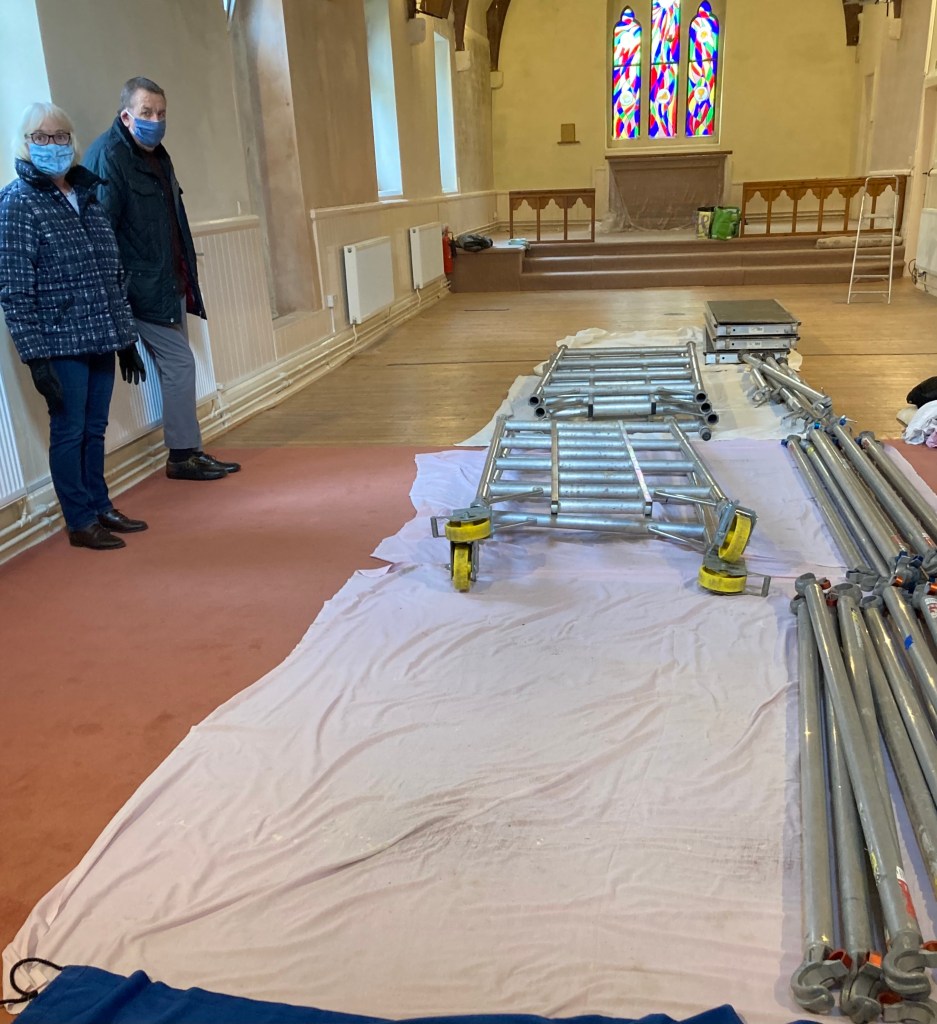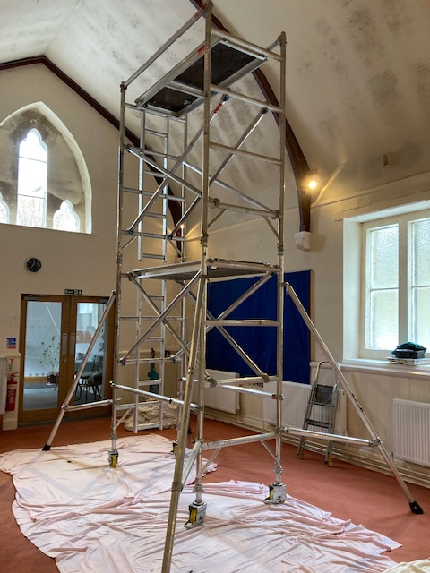 Stuart finished his work on Monday 22/02/21. The scaffolding came down and was returned to Paul – a huge thanks to Paul who loaned us the scaffold tower at no cost saving us a lot of money