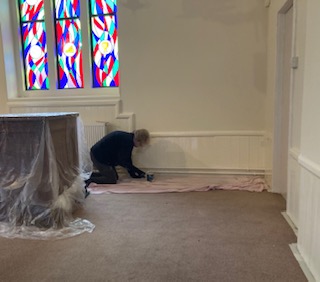 Joyce started cleaning – washing the wooden floor – shampooing the carpets – dusting and generally getting ready for the Church to re open on Sunday 28th March 2021 – Palm Sunday